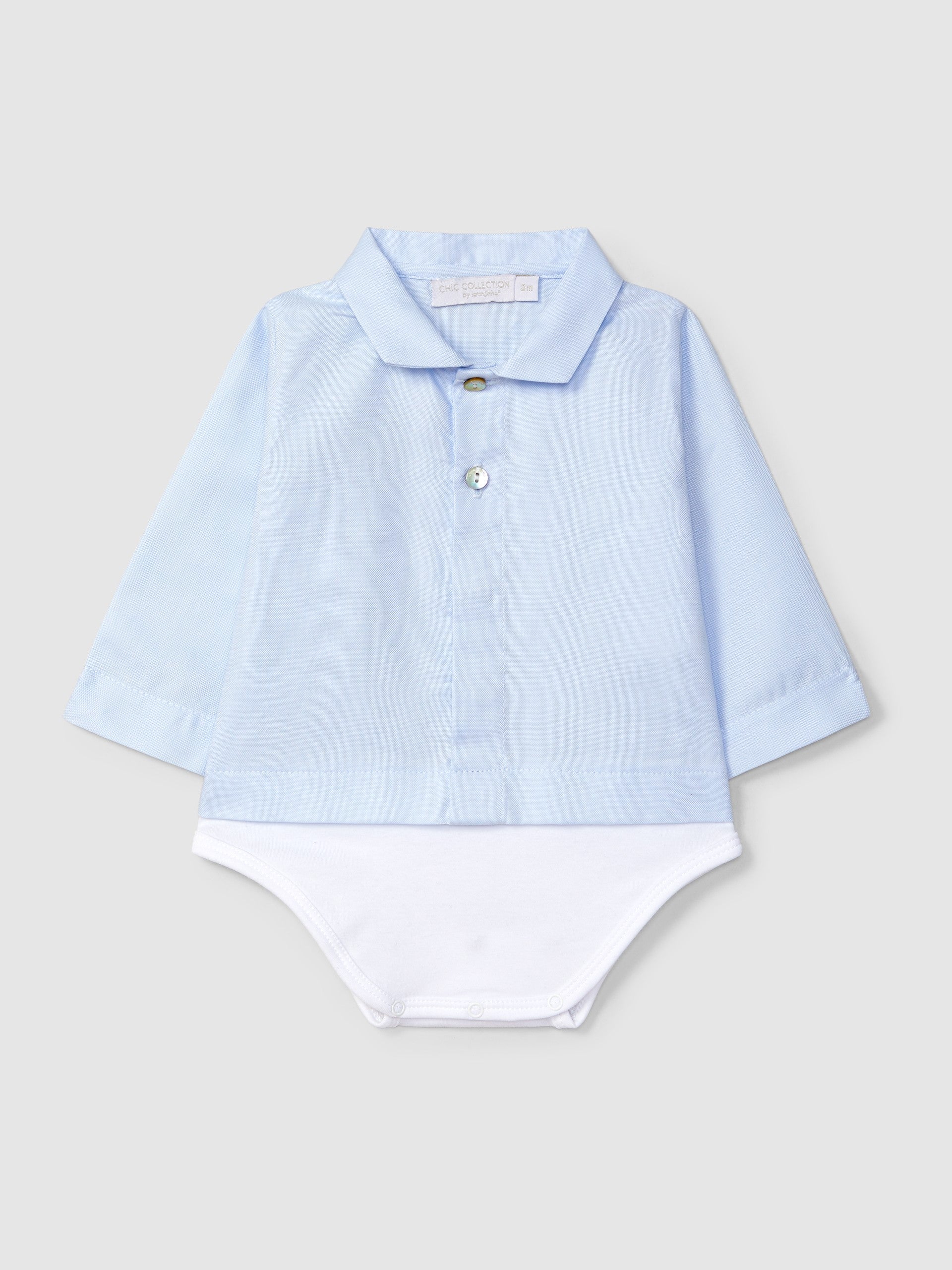 Body-shirt in 100% morbido cotone con parte inferiore in jersey per un maggiore comfort. Chiusura con bottoni Laranjinha in madreperla sul davanti e bottoni a pressione tra le gambe in due posizioni. Un unico pezzo che sembra doppio.
