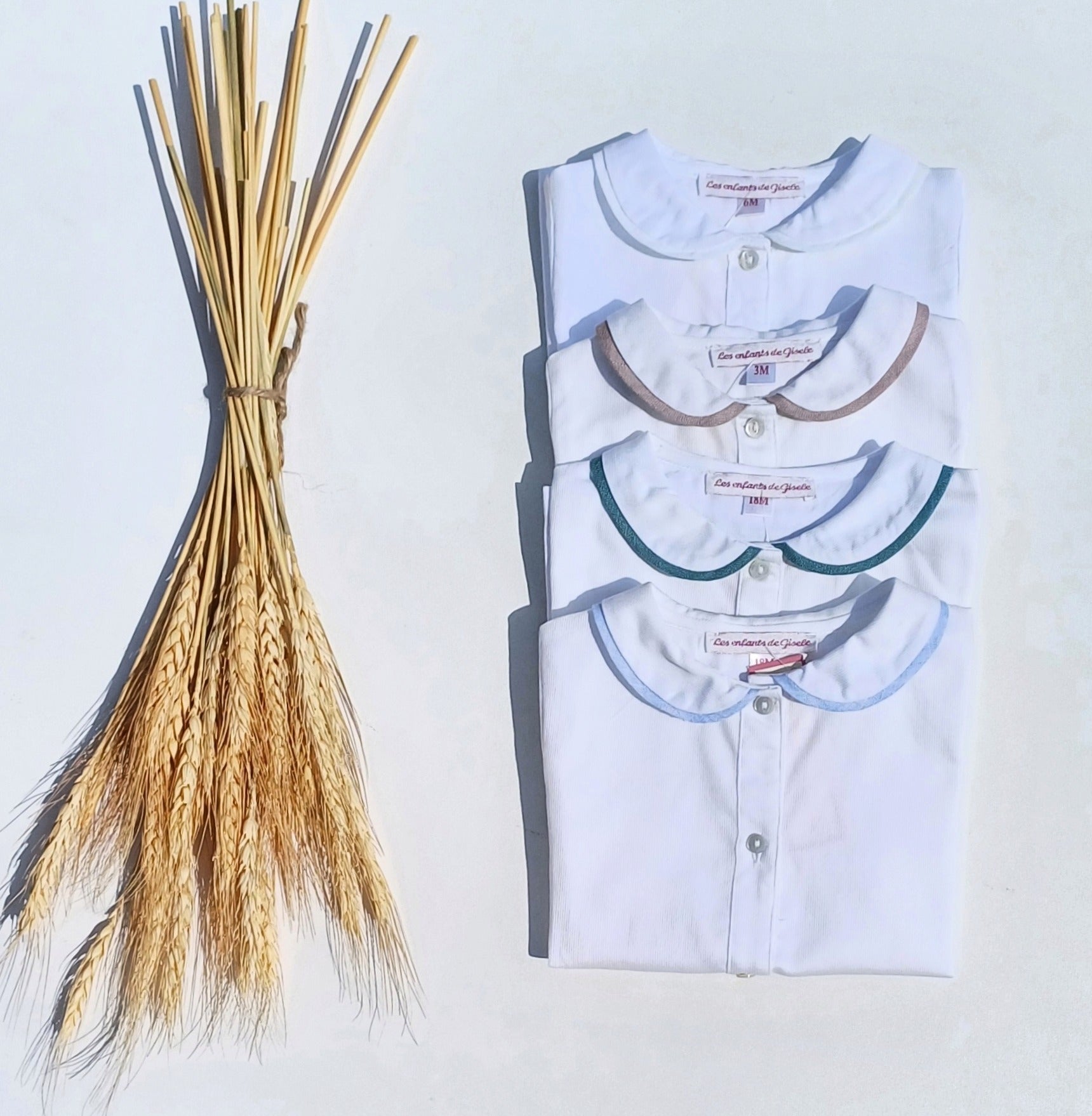 Camicia in piquet con collo tondo e bordino in vari colori. Bottoni in madre perla