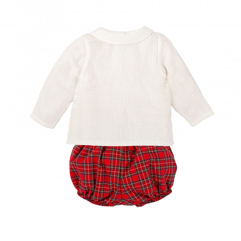 Completo composto da camicia in garza foderata e coulotte tartan con bottoni decorativi