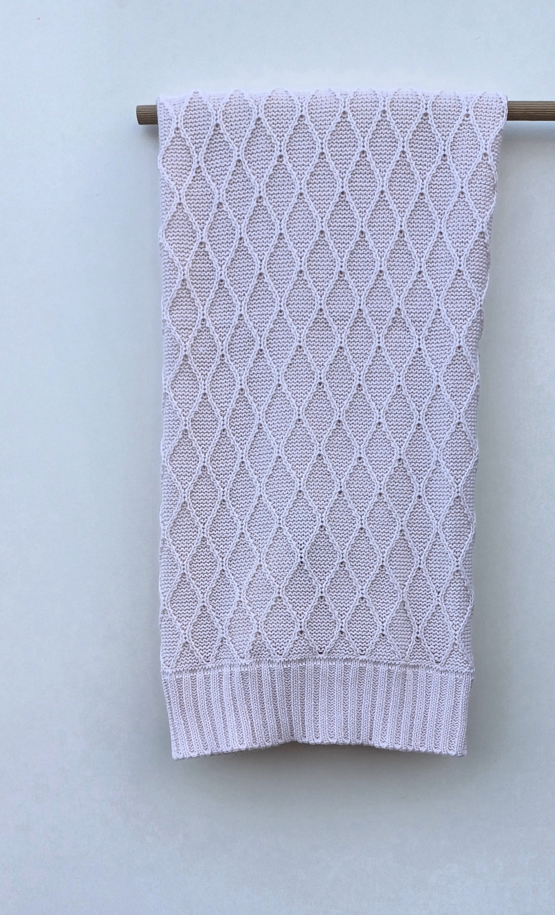 Copertina in filo di cotone con ricamo, lavorata interamente a mano in Italia.