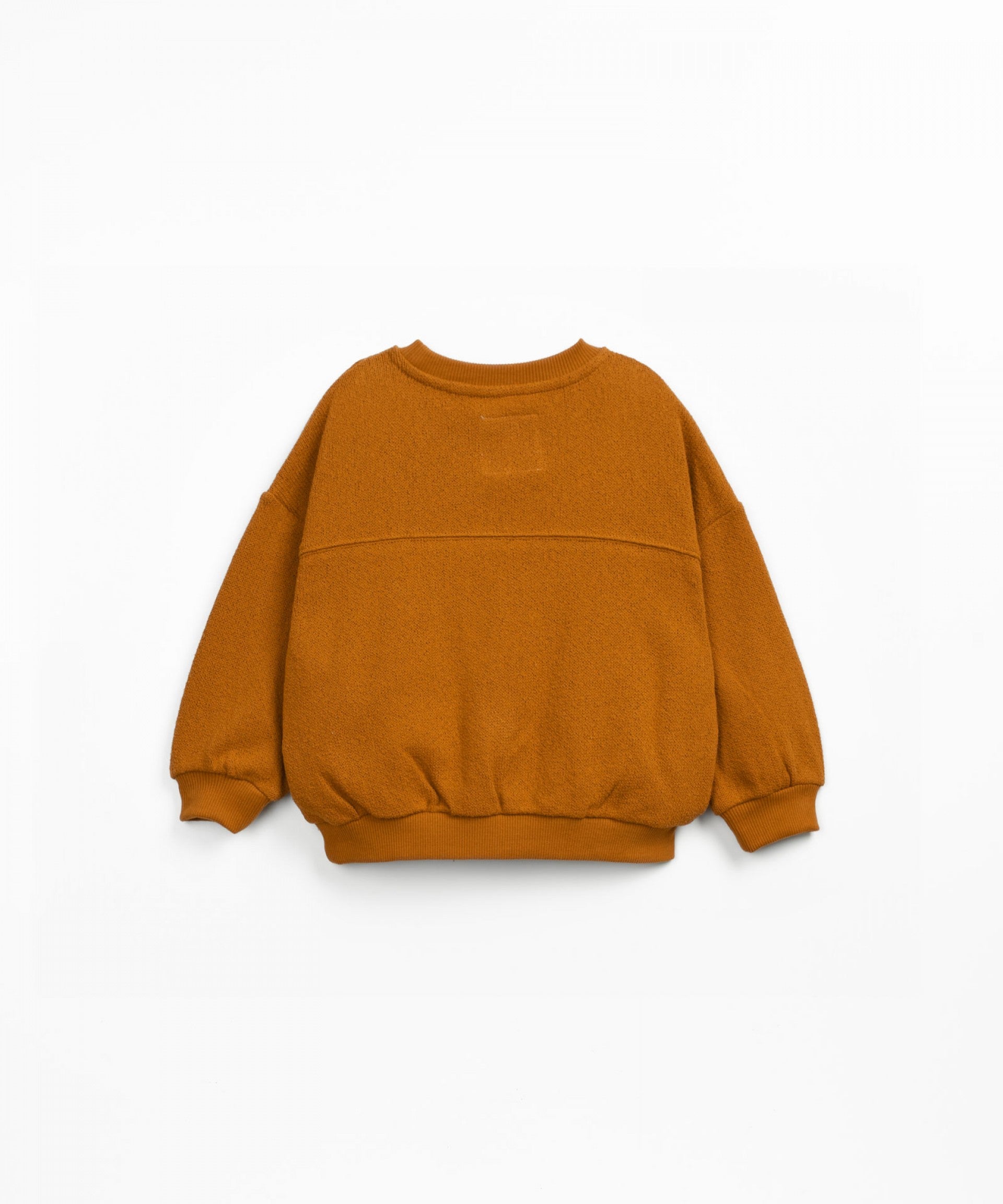 Questa felpa è realizzata in tessuto jersey con un mix di cotone rigenerato e cotone riciclato, di colore arancione. Presenta maniche lunghe, scollo rotondo e polsini e orlo a coste.