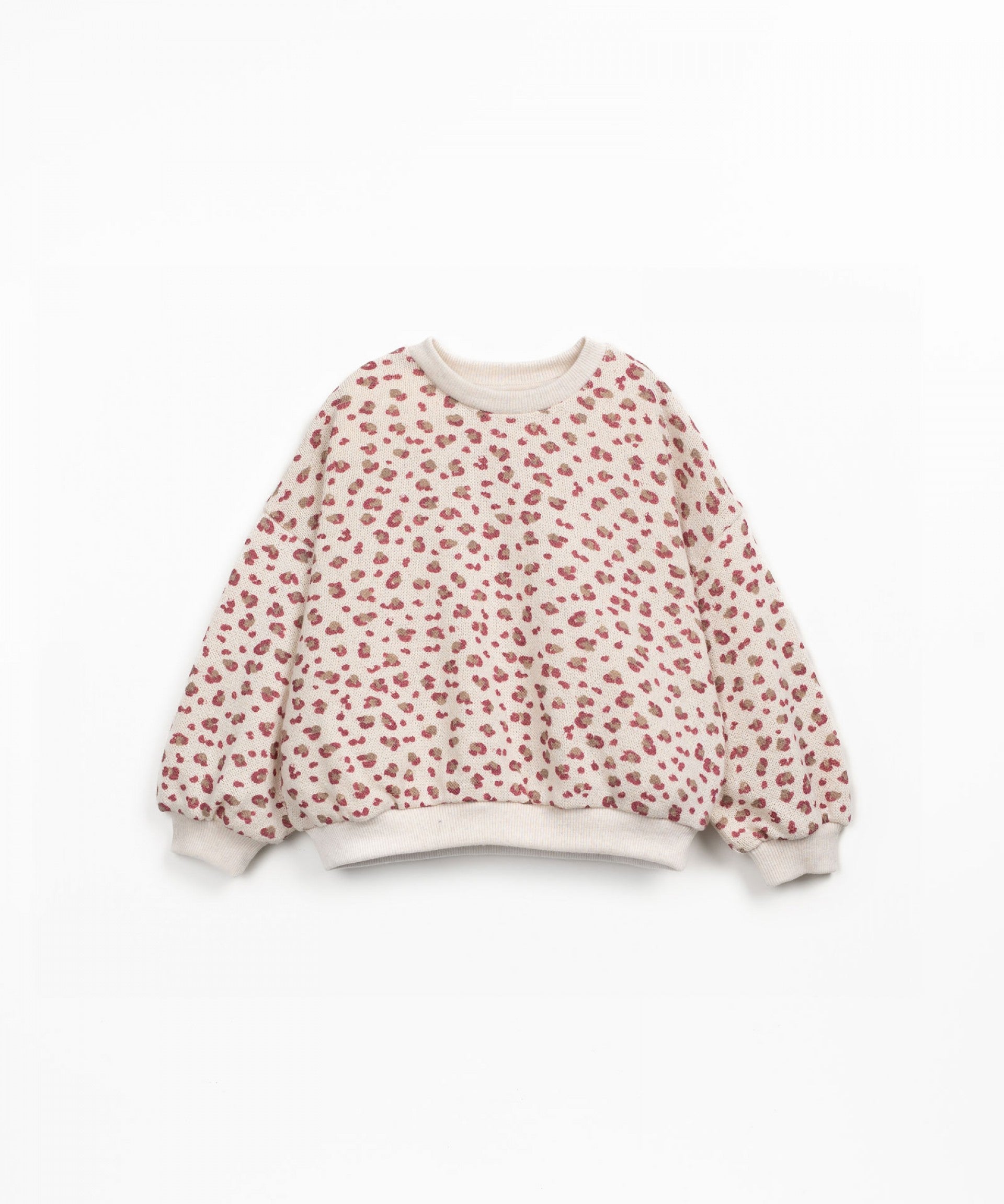 Questa felpa è realizzata in tessuto a maglia con un mix di cotone rigenerato e cotone riciclato, nel colore Off White. Presenta scollo rotondo, polsini e vita elasticizzati e la nostra stampa animalier.