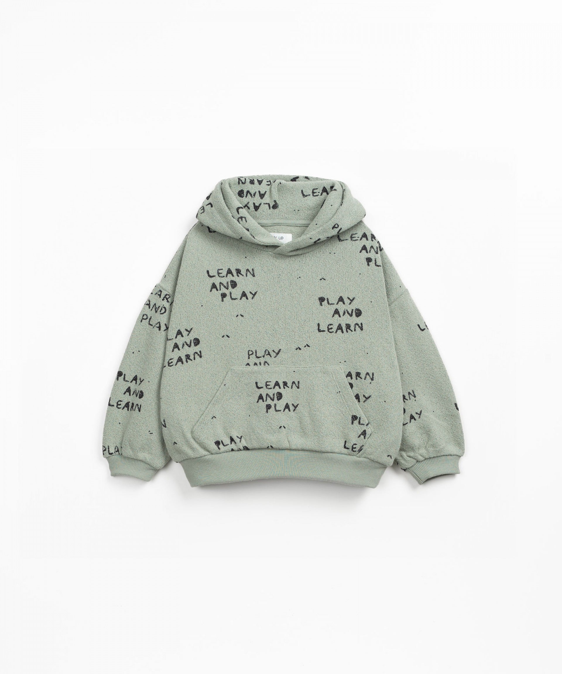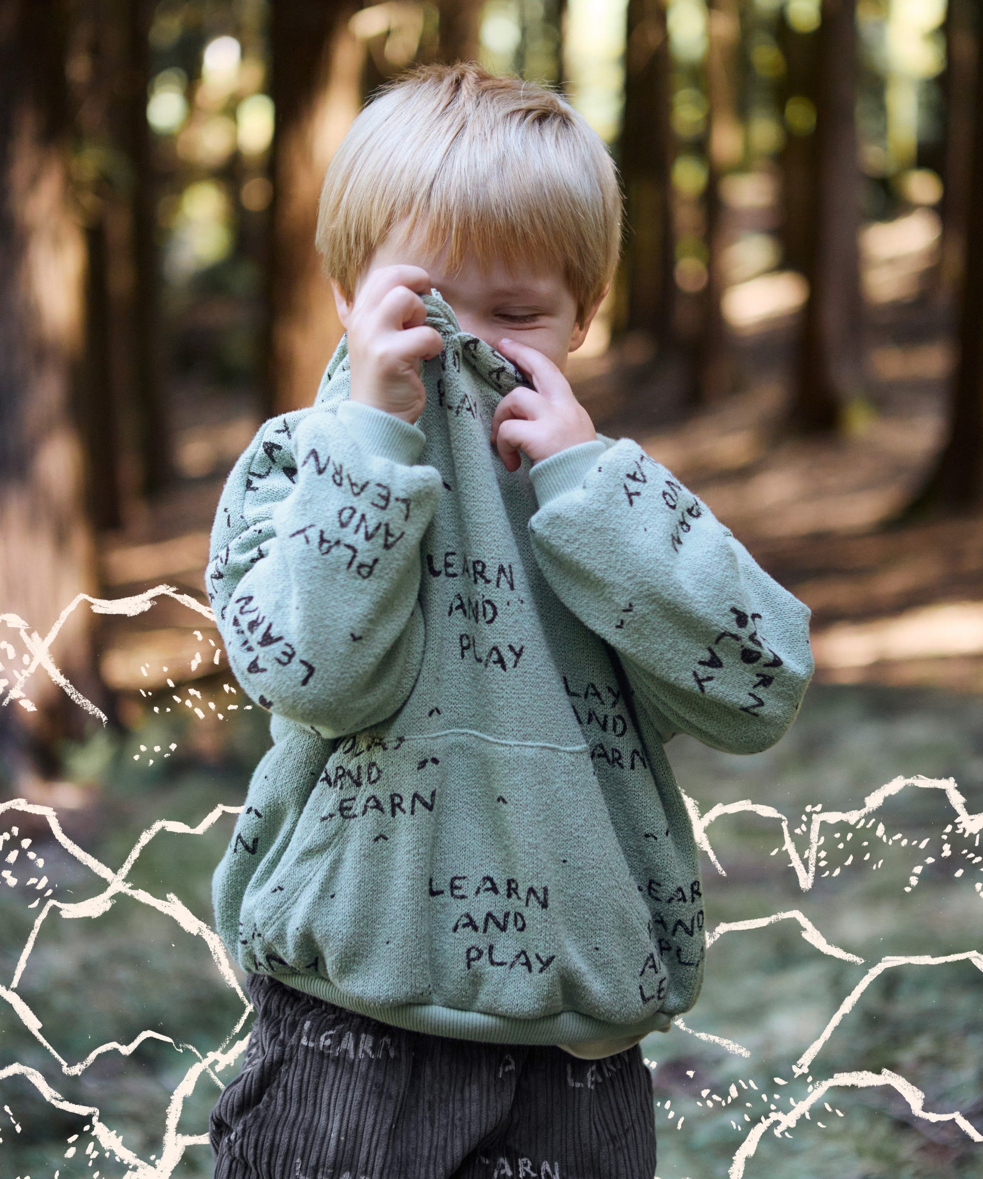 Questa felpa è realizzata in jersey con un mix di cotone rigenerato e cotone riciclato, nel colore verde chiaro. Presenta un cappuccio, una tasca a marsupio, elastici sulle maniche e sull'orlo e la nostra stampa con le frasi.