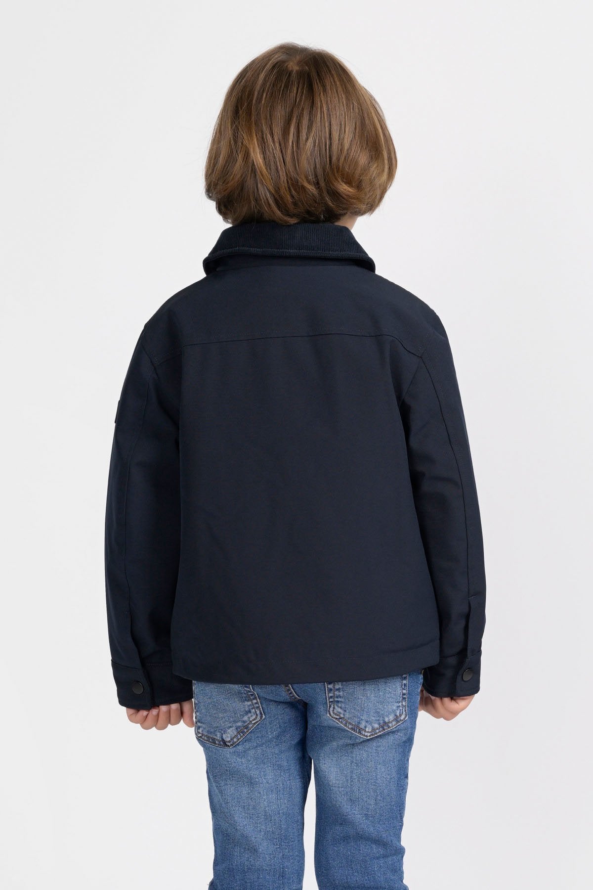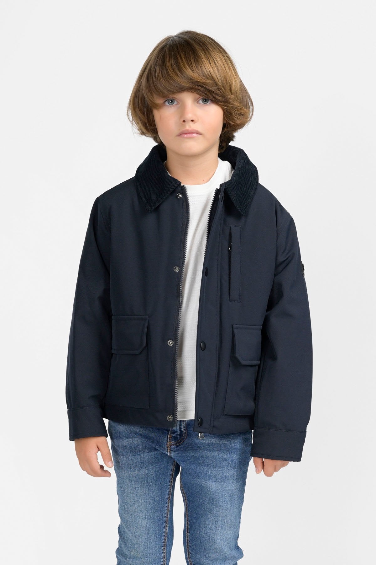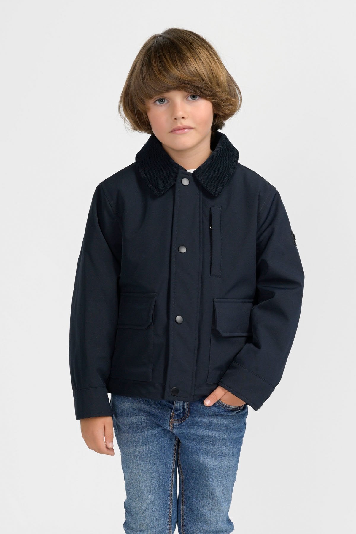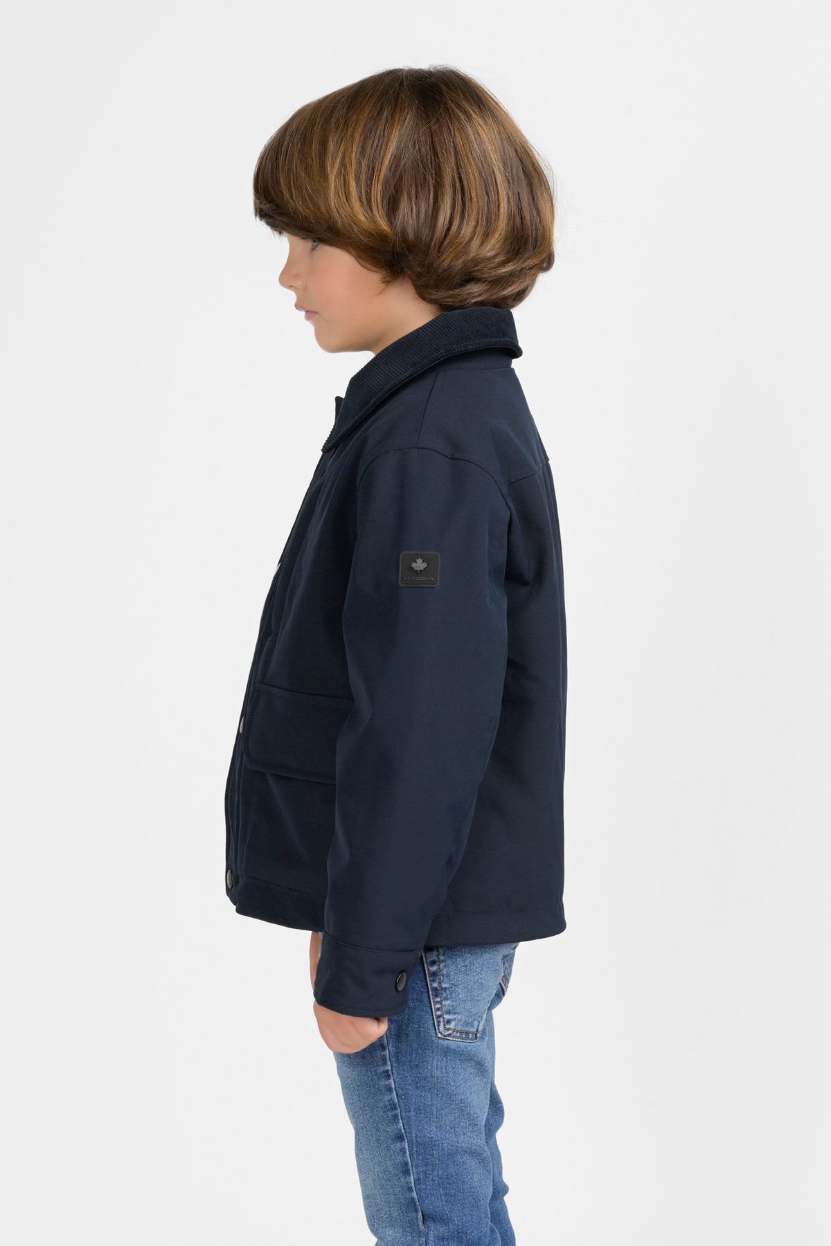 Stile urbano e dettagli retrò per il giubbotto Eckville Jr. Realizzato in tessuto tecnico Bio Finish Stretch, garantisce comfort e libertà di movimento. Il colletto in velluto a coste aggiunge un tocco raffinato, mentre le tasche funzionali e la chiusura con bottoni a pressione lo rendono perfetto per l'uso quotidiano.