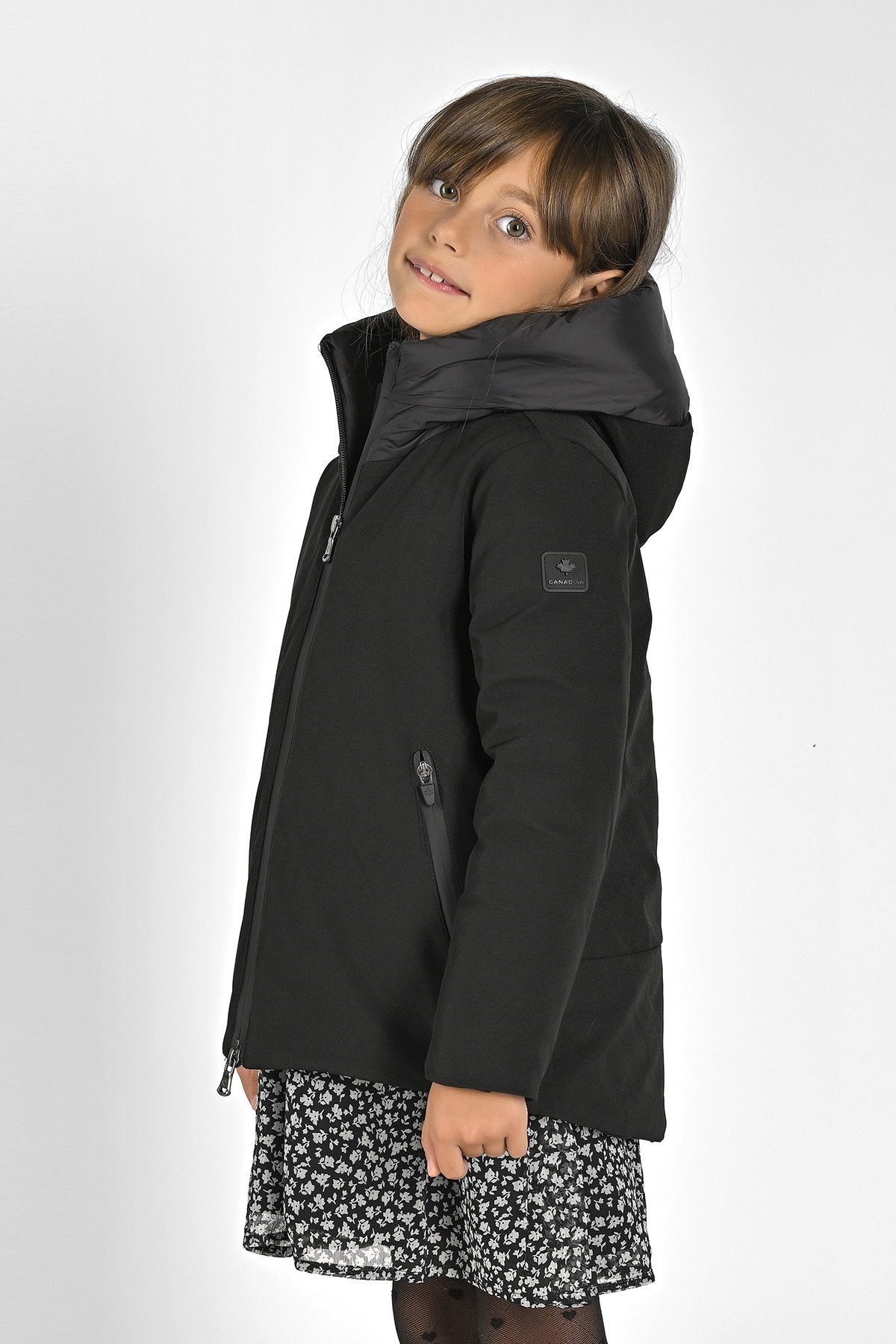 Questa giacca proposta da Canadian è realizzata in poliestere con una piccola percentuale di elastane che rende più confortevoli i movimenti e i vostri figli la adoreranno. Ha un'imbottitura di poliestere al 100%, quindi è leggera, ma allo stesso tempo assicura una buona dose di calore e la finitura bio finish la rende resistente all'acqua: un pensiero in meno per le mamme e i papà, in caso di pioggia. Completano la lista di plus, un collo alto ad anello con cappuccio fisso, una cerniera frontale e due tasche laterali chiuse da zip a contrasto. E' perfetta quindi per andare a scuola e poi correre al parco quando suona la campanella, con qualsiasi tempo.