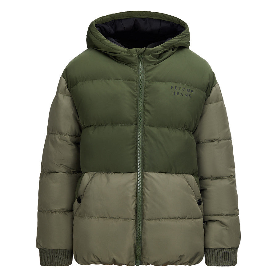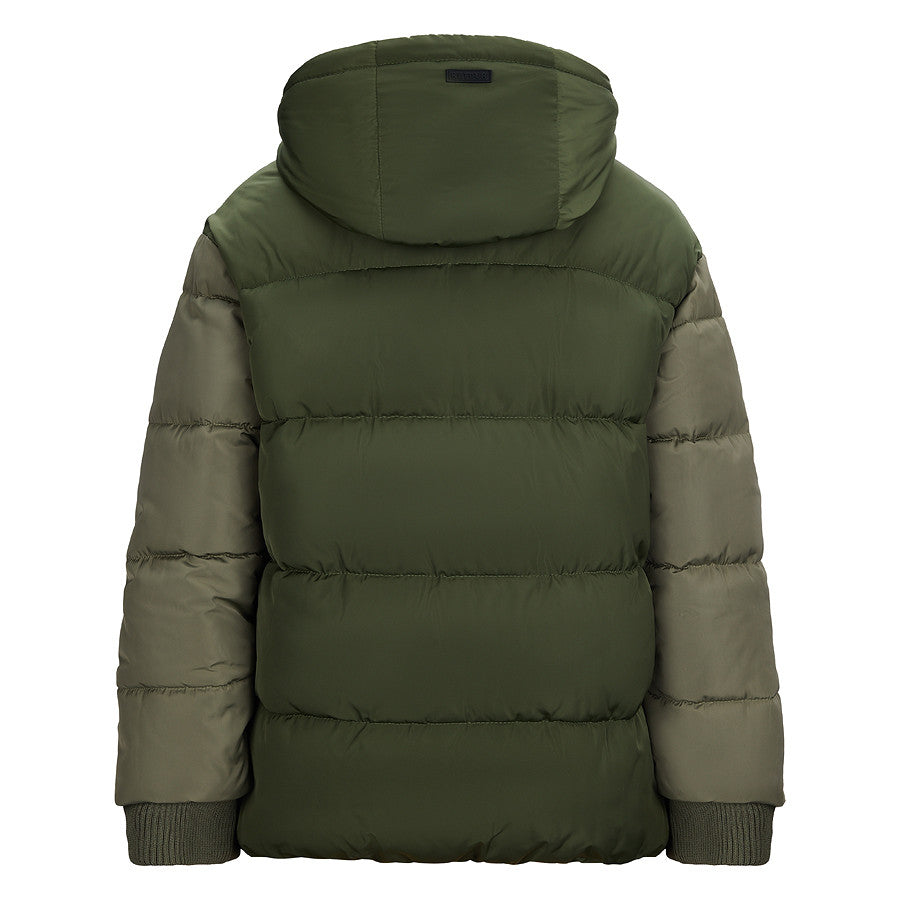 Giubbino con cappuccio fisso, chiusura con cerniera e bottoni sulle tasche con patta e chiusura in velcro, è idrorepellente e antivento.