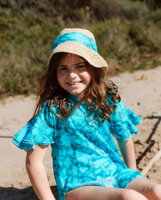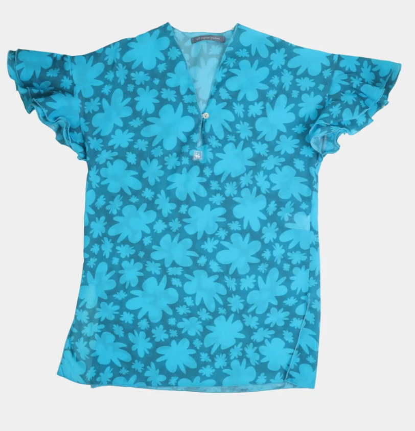 Questa tunica ultraleggera è realizzata con la stampa della collezione Hibiscus. È fantastica abbinata al bikini o al costume intero della stessa collezione. La scollatura la rende facile da indossare e da togliere, e le maniche con volant aggiungono un tocco unico. Questo caftano è realizzato in pregiato voile di cotone 100%.