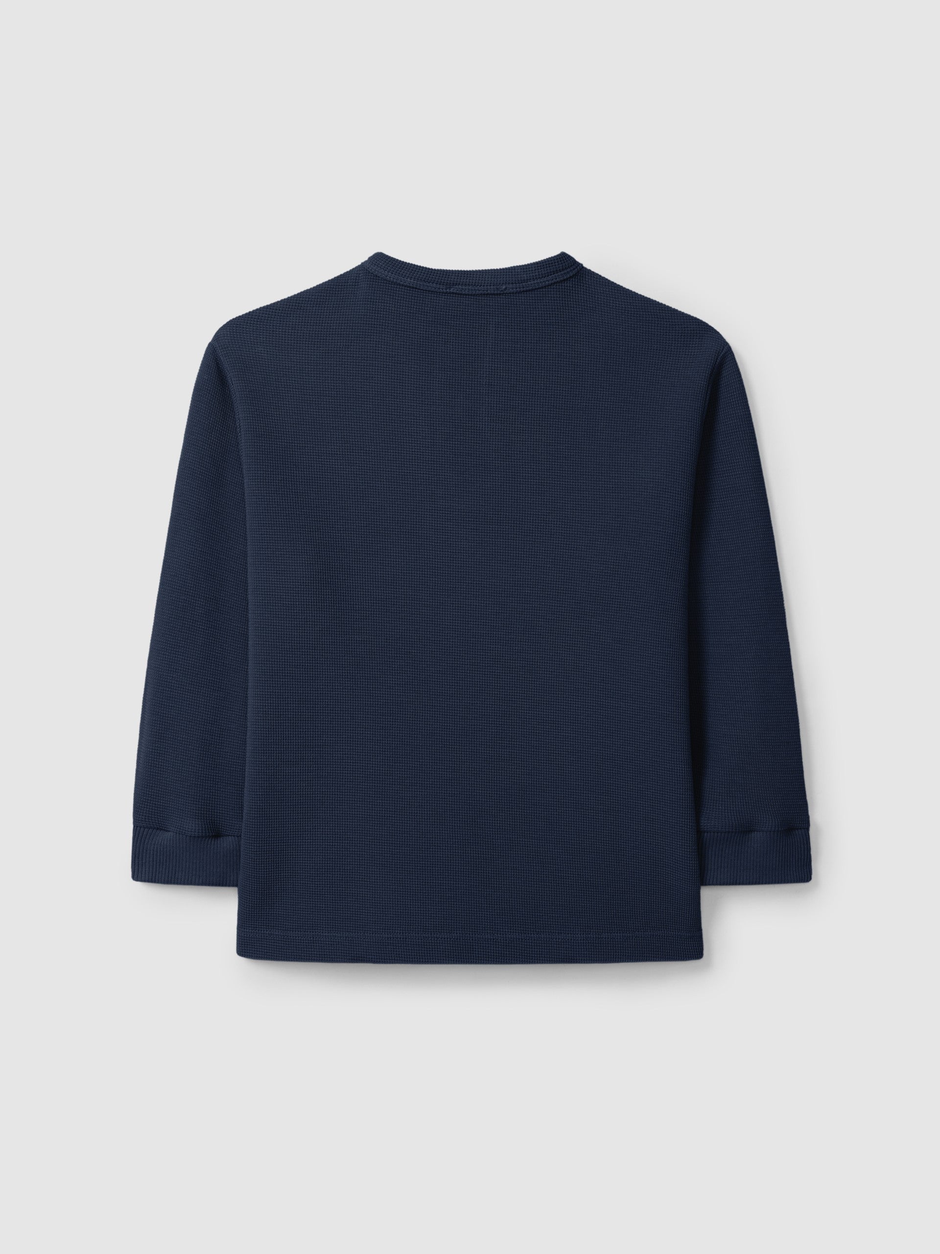 Shirt a maniche lunghe con collo alla coreana in 100% cotone a nido d'ape. Chiusura frontale con bottoni.