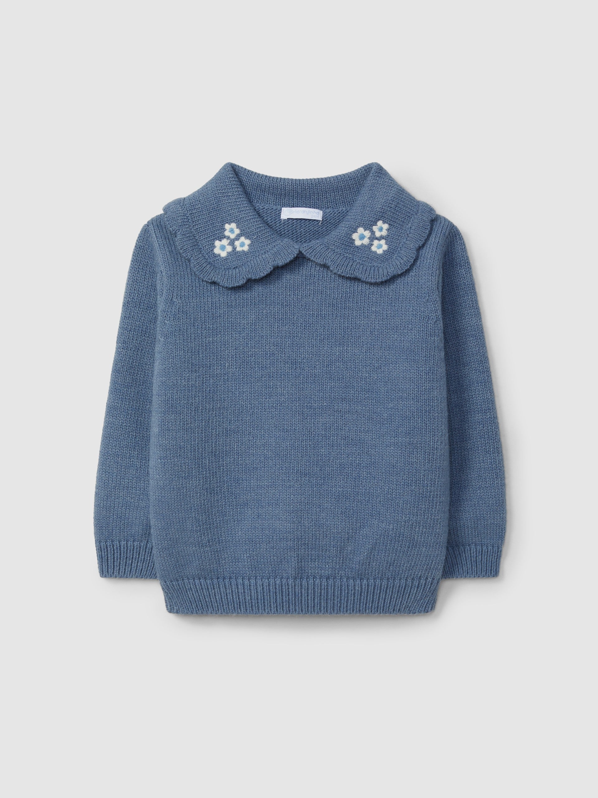 Maglione lavorato a maglia. Colletto con dettaglio di delicati fiori ricamati.