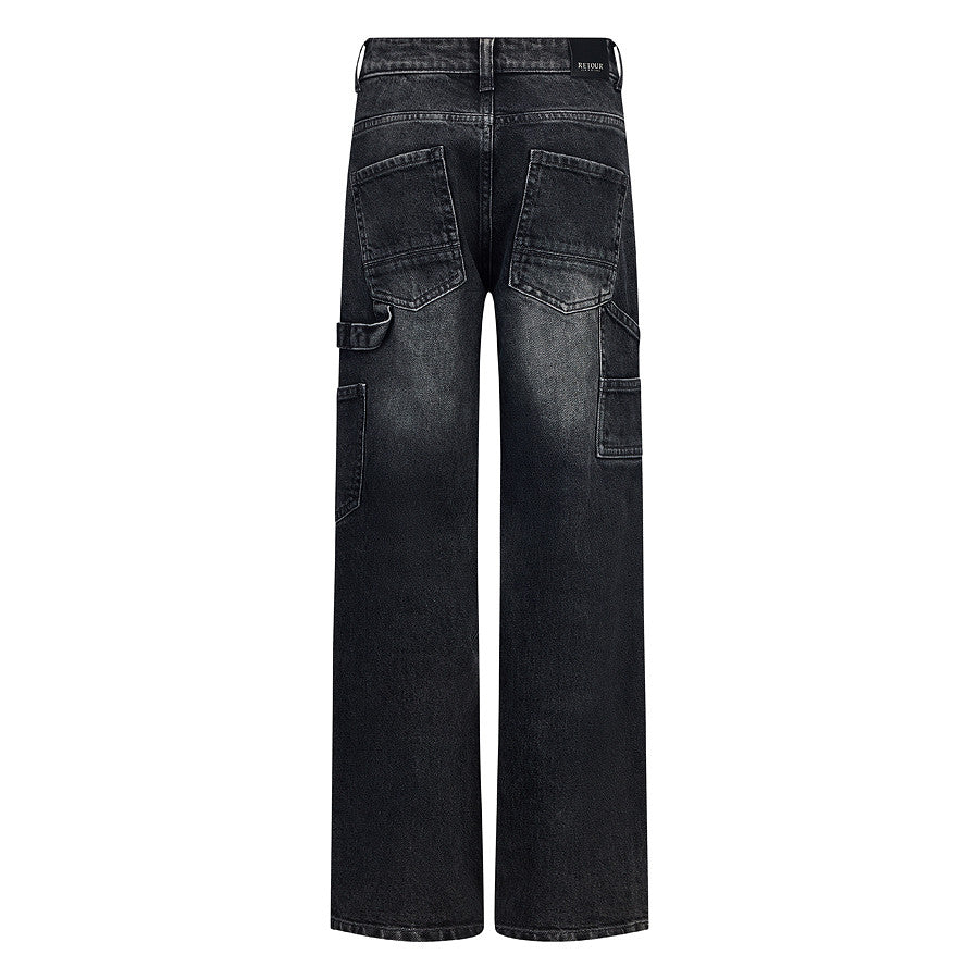 Jeans oversized grigio scuro delavè con gamba larga e tascone sul lato