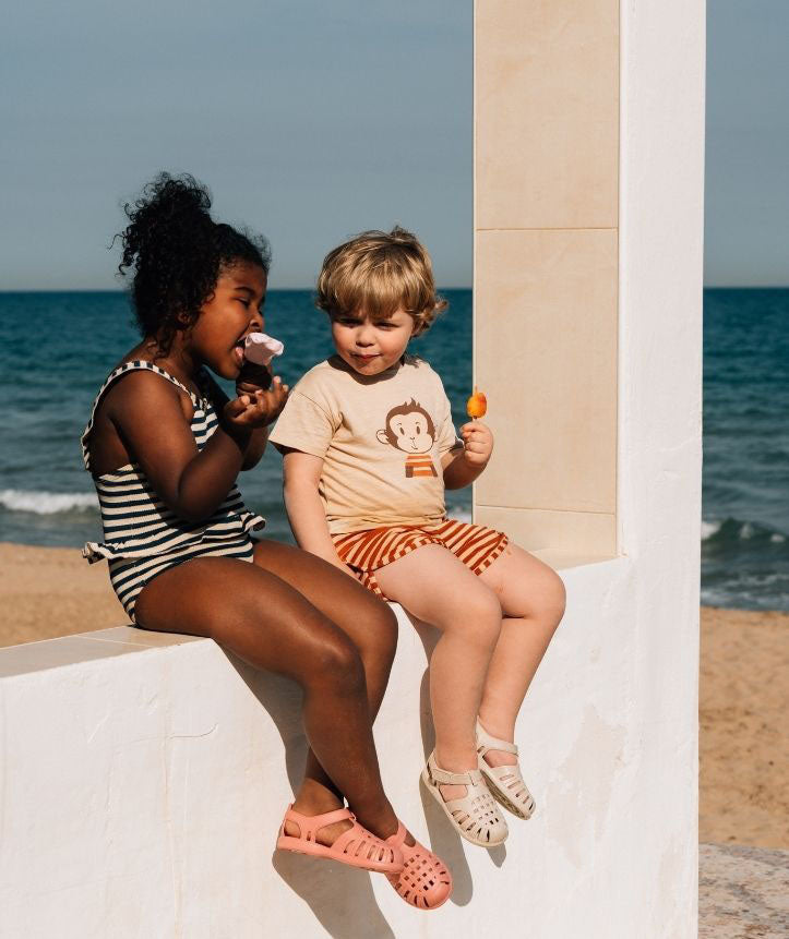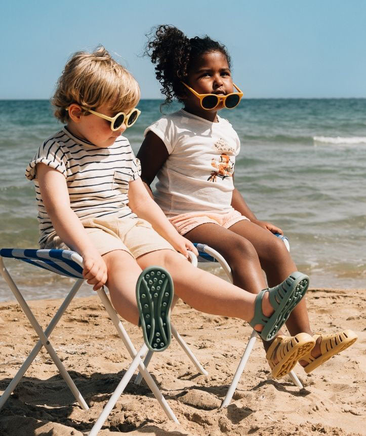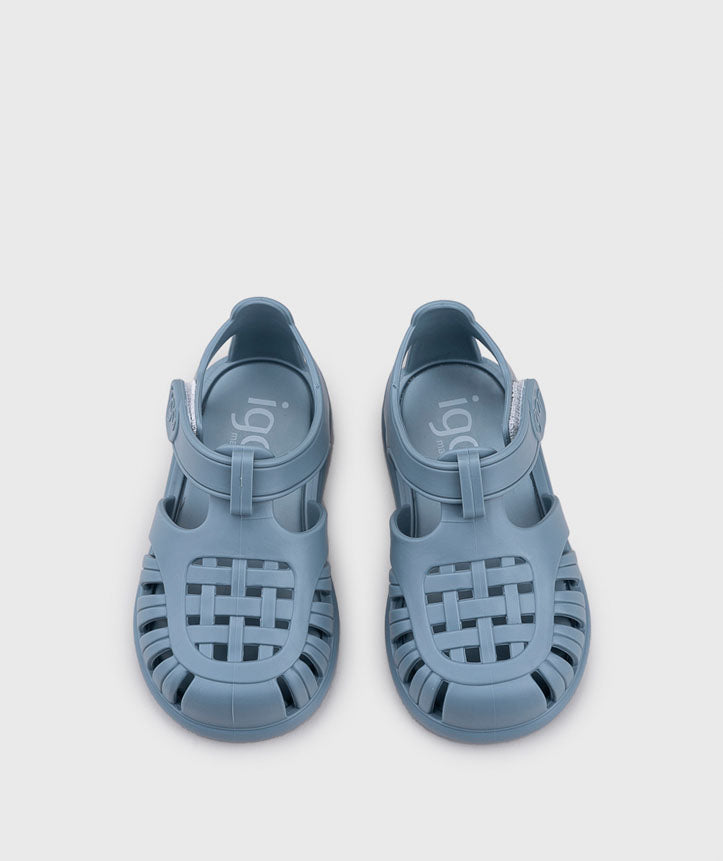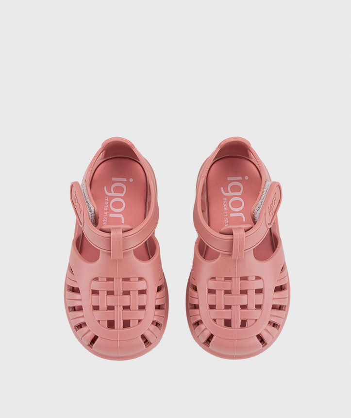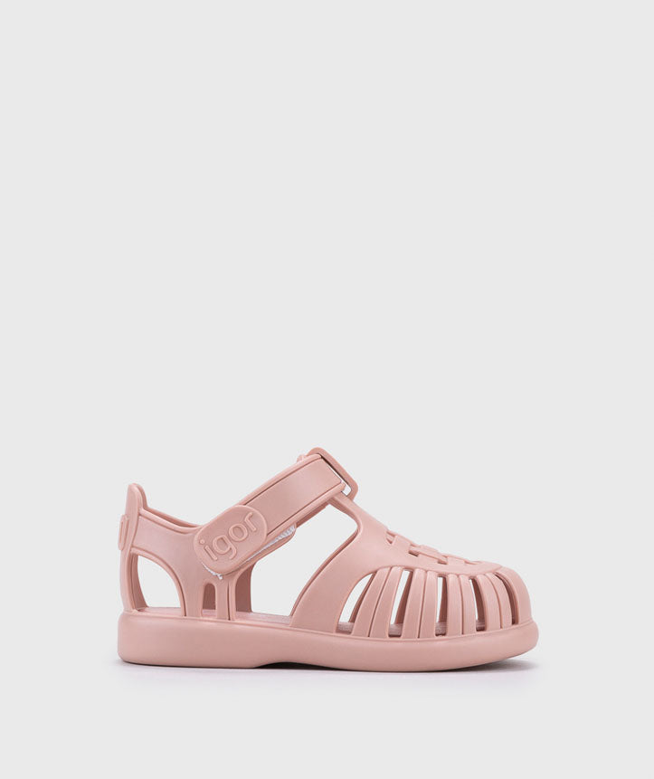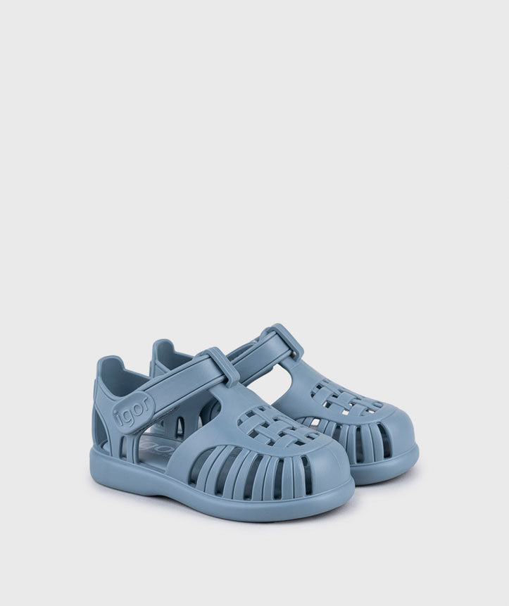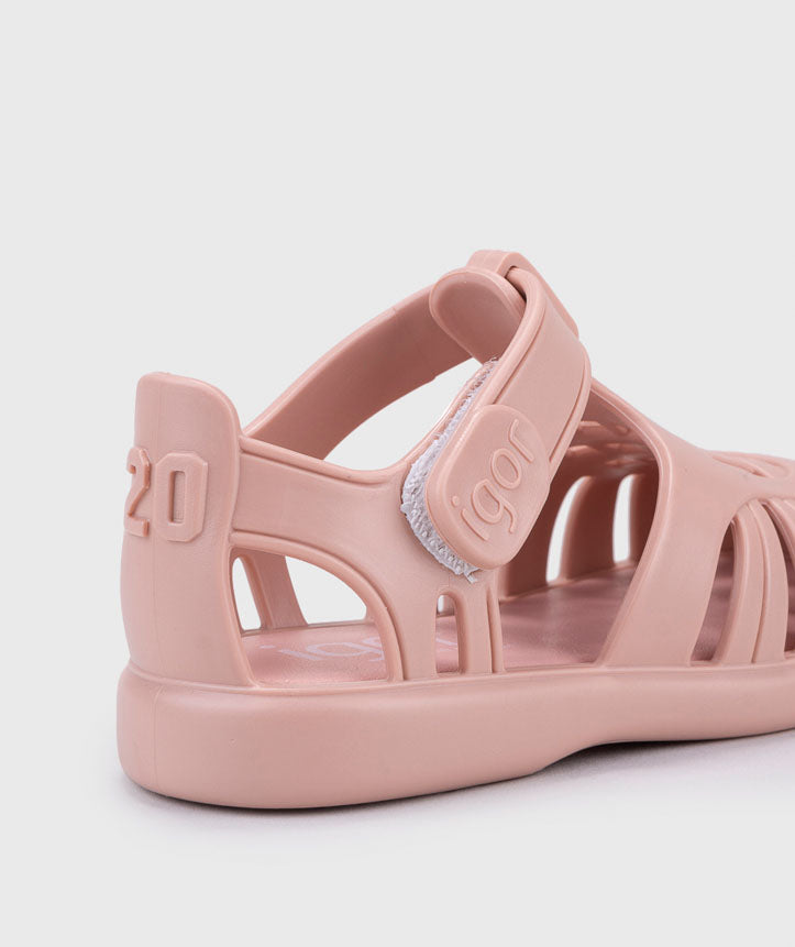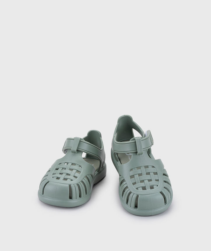 Sandali in gomma realizzate con PVC al 50% privo di ftalati, chiusura a strappo.