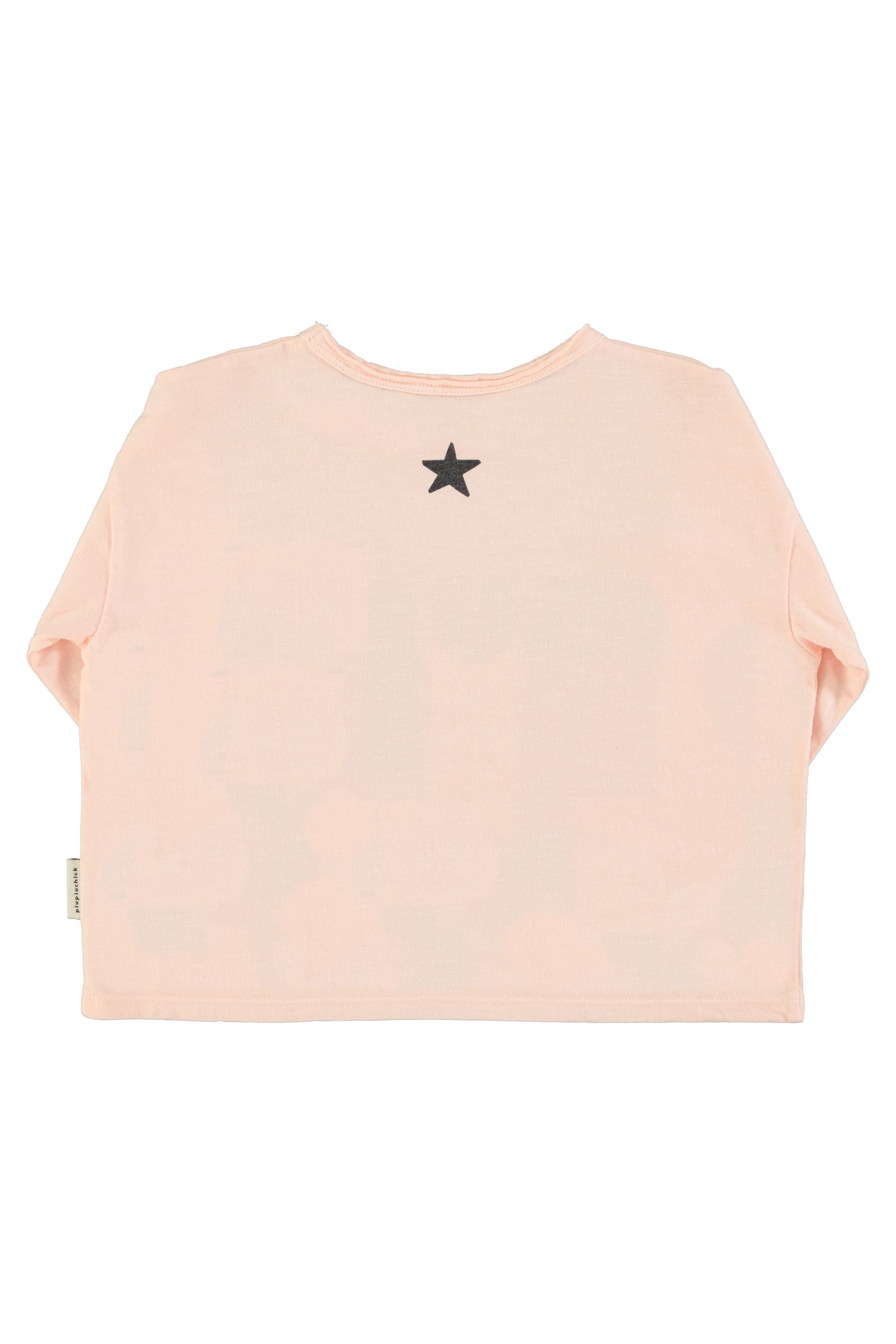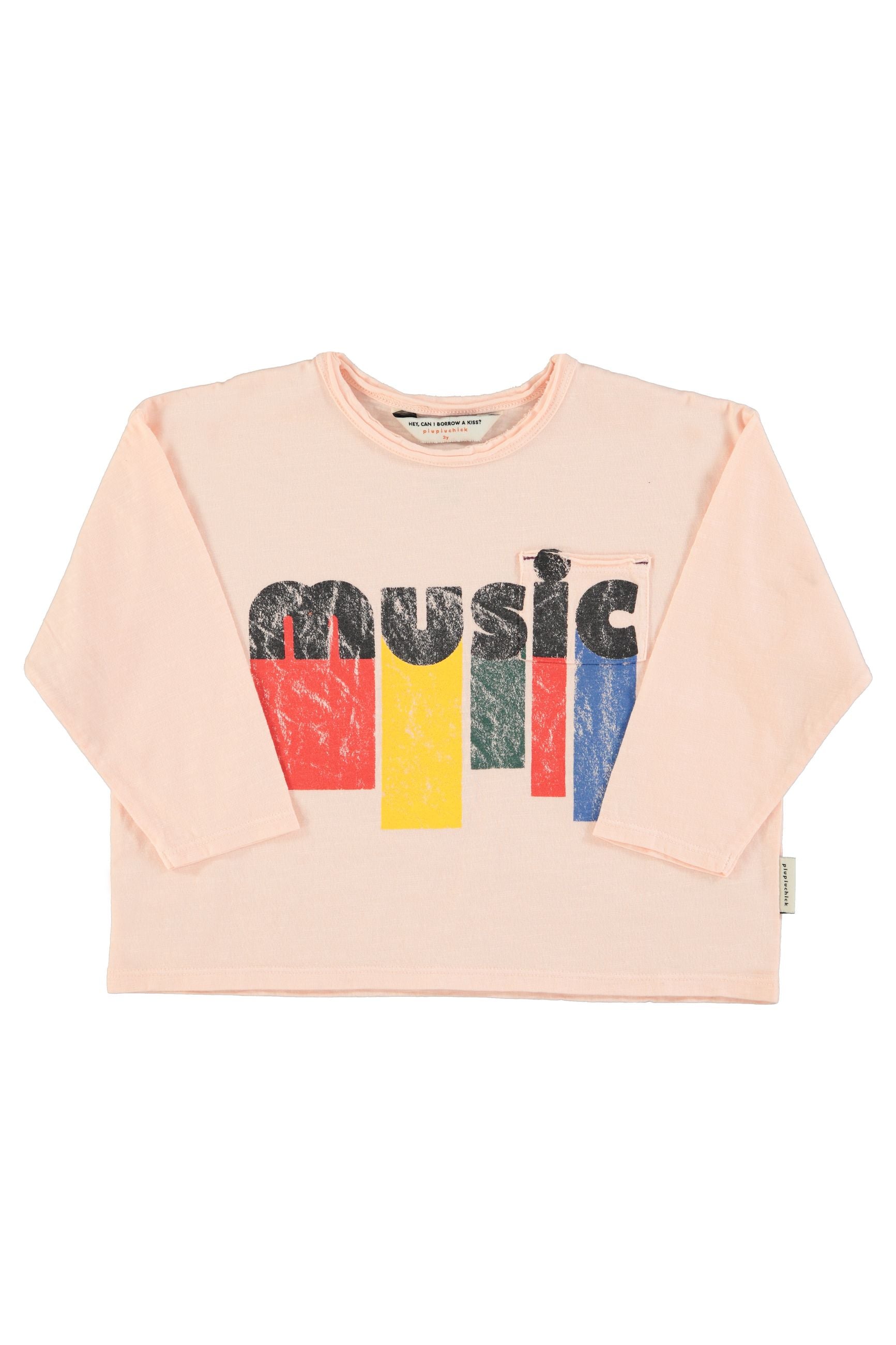 Shirt manica lunga in cotone rosa chiaro con scritta ''MUSIC'' sul davanti e tasca decorativa