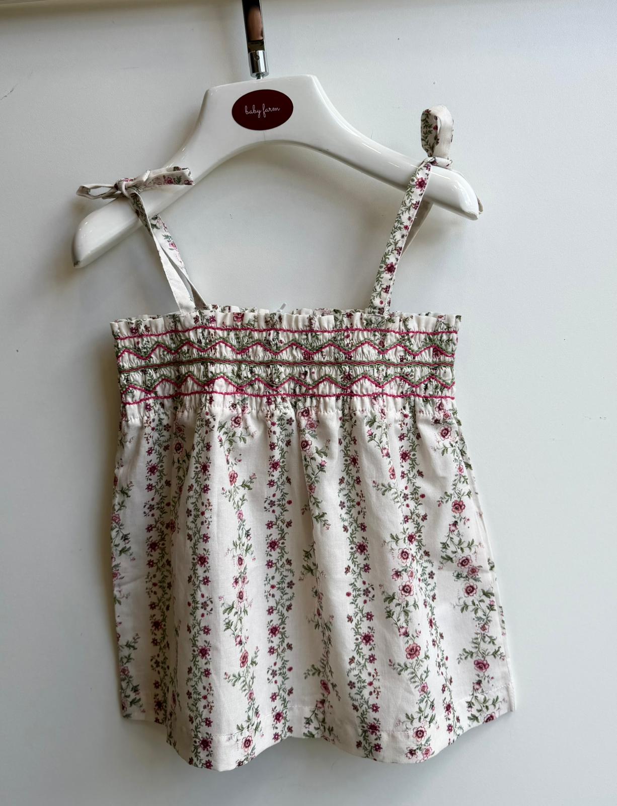 Top in cotone con punto smock stampa floreale